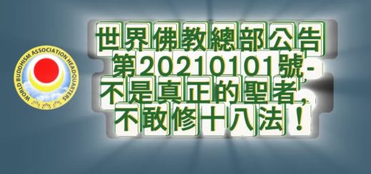 0 世界佛教总部公告 2025年8月23日 由 admin · Published 2025年8月23日 · Last modified 2025年8月26日 世界佛教總部公告 第20210101號-不是真正的聖者,不敢修十八法! 世界佛教總部公告 第20210101號 -不是真正的聖者,不敢修十八...