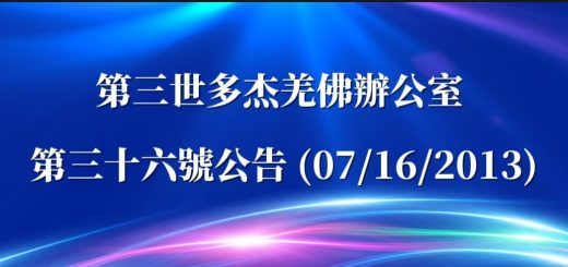 0 第三世多杰羌佛办公室公告 2025年8月26日 由 admin · Published 2025年8月26日 第三世多杰羌佛辦公室 第三十六號公告 (07/16/2013) 下載 第三世多杰羌佛辦公室第三十六號公告(pdf ) ...