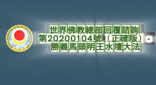 0 世界佛教总部公告 2025年8月21日 由 admin · Published 2025年8月21日 · Last modified 2025年8月26日 世界佛教總部回覆諮詢 第20200104號 (正確版)- 勝義馬頭明王水壇大法 世界佛教總部回覆諮詢 第20200104號 (正確版) –...