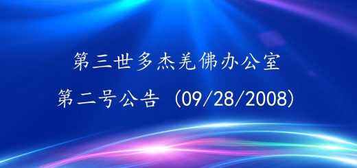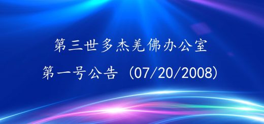 0 第三世多杰羌佛办公室公告 2023年7月10日 由 admin · Published 2023年7月10日 · Last modified 2023年7月18日 第三世多杰羌佛办公室 第一号公告 (07/20/2008)